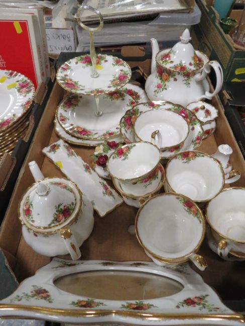 THREE TRAYS OF ROYAL ALBERT OLD COUNTRY ROSES TEA / DINNER WARE