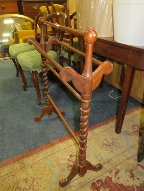 AN EDWARDIAN MAHOGANY TOWEL RAIL