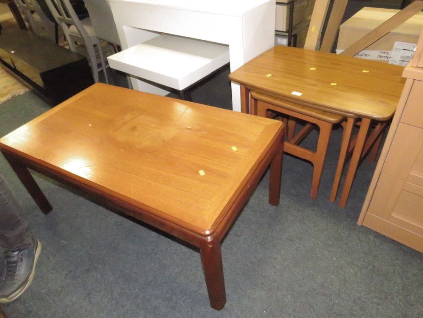A MID CENTURY SCHREIBER NEST OF TABLES WITH A TEAK G-PLAN COFFEE TABLE