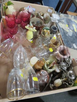 THREE TRAYS OF SUNDRIES TO INCLUDE CERAMICS AND GLASS ETC
