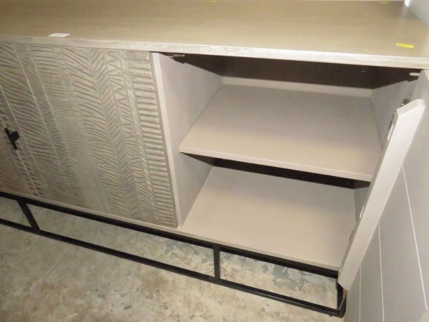 A MODERN GREY THREE DOOR SIDEBOARD W-140 CM