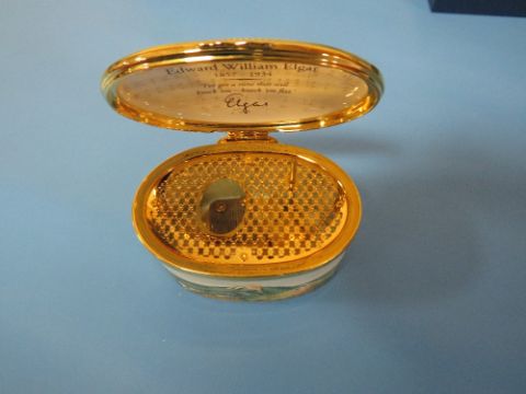 A BOXED HALCYON DAYS ENAMEL LIMITED EDITION LAND OF HOPE AND GLORY EDWARD WILLIAM EDGAR MUSICAL BOX TOGETHER WITH ANOTHER ENAMEL BOX AND SEVERAL CERAMIC QUEENS JUBILEE BOXES