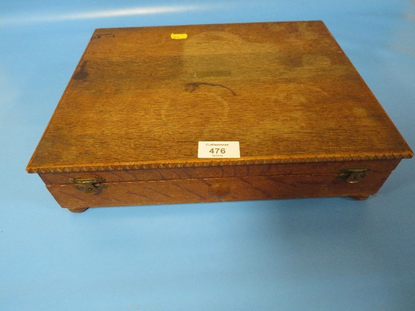 AN OAK CASED CANTEEN OF CUTLERY AND CONTENTS