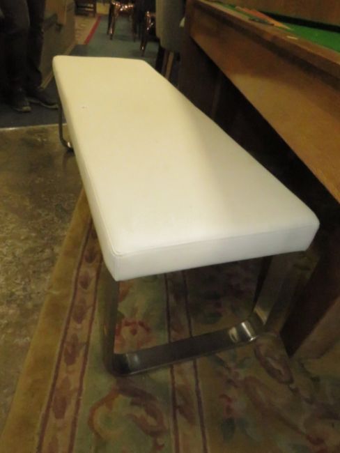 A MODERN WHITE UPHOLSTERED STOOL - L 137 cm