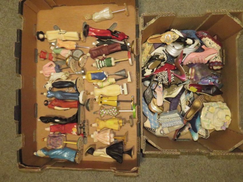TWO TRAYS OF ORNAMENTS TO INCLUDE "JUST THE RIGHT SHOE" AND "THE LATEST THING"