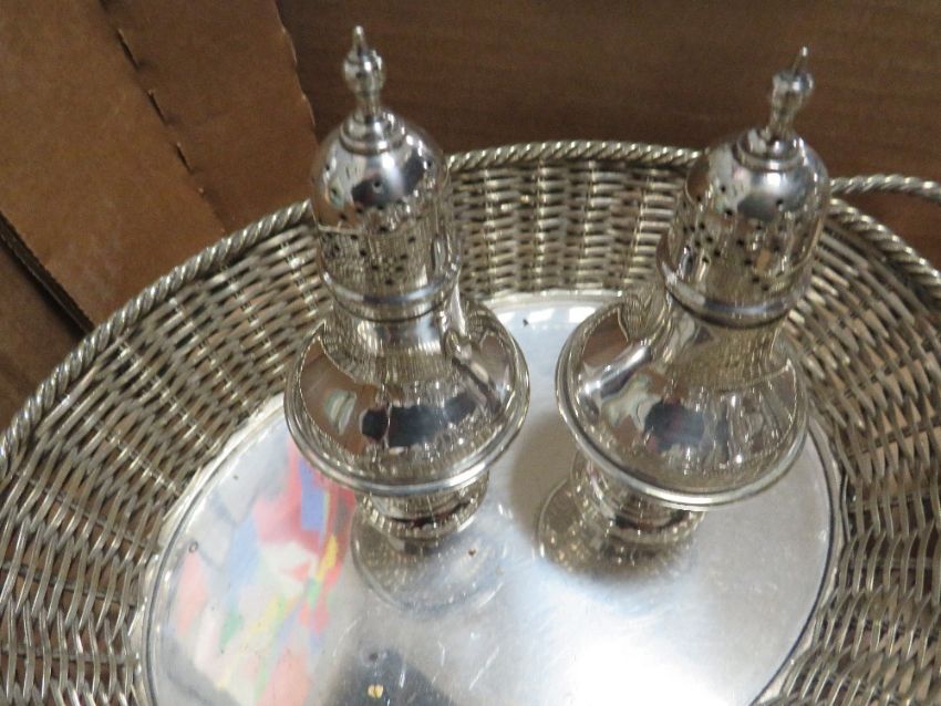 A TRAY OF SILVER PLATED WARE TO INCLUDE A THREE PIECE COFFEE SET