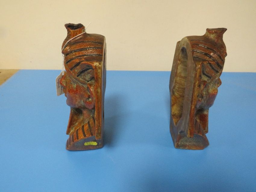 A PAIR OF VINTAGE LIQUEUR BOTTLES IN THE SHAPE OF PHARAOHS HEADS MADE IN ITALY FOR LUXARDO