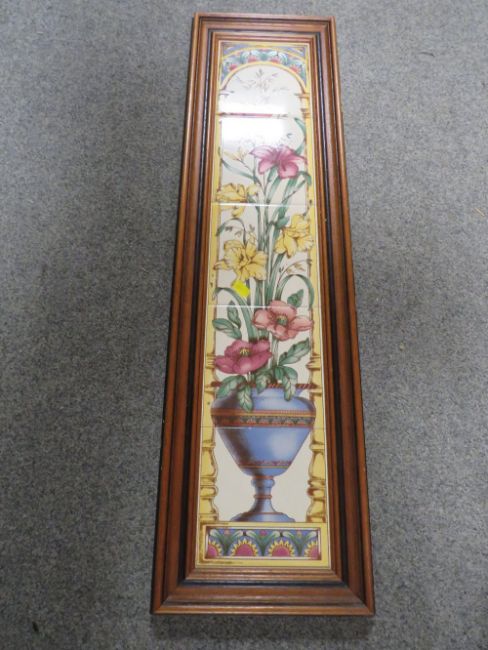 A FRAMED TILED PICTURE TOGETHER WITH A SMALL QUANTITY OF CERAMICS