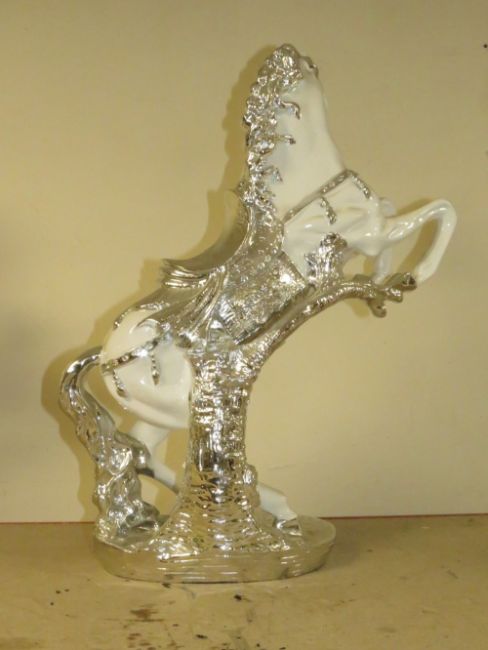 A DECORATIVE SILVER AND WHITE REARING HORSE MODEL