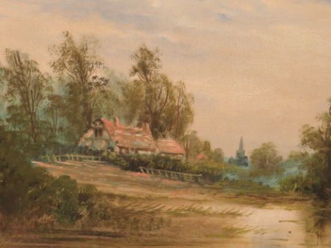AN ENGLISH COUNTRY LANDSCAPE OIL ON CANVAS - 37 x 49.5 cm
