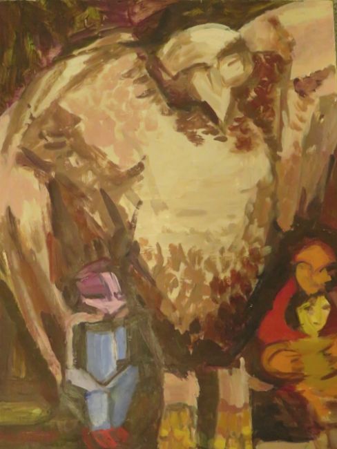 PAMELA ABEL SMITH MODERNIST STUDY OF A BIRD AND FIGURES SIGNED VERSO