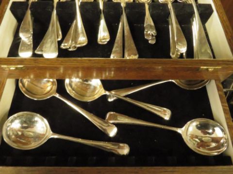 AN OAK CASED CANTEEN OF CUTLERY (UNCHECKED)