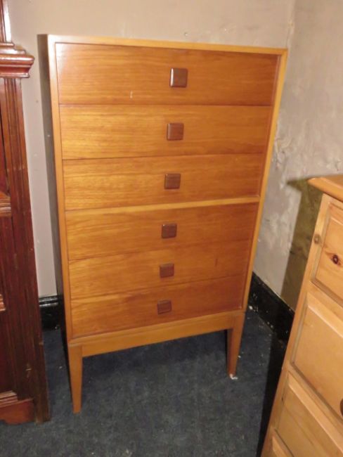 A MID CENTURY TEAK SIX DRAWER CHEST W-61 CM