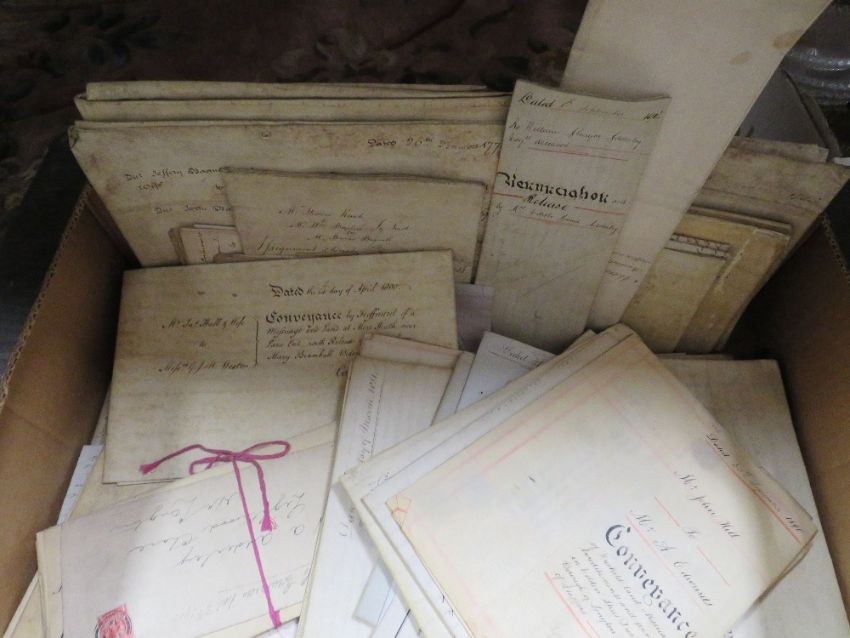 TWO BOXES OF VINTAGE DEEDS MAPS AND EPHEMERA