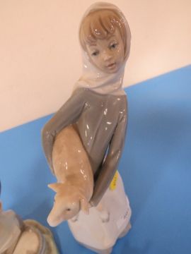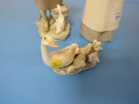 TWO LLADRO FIGURINES TOGETHER WITH A LLADRO FIGURE OF GOOSE WITH GOSLINGS
