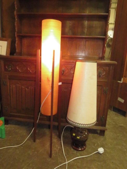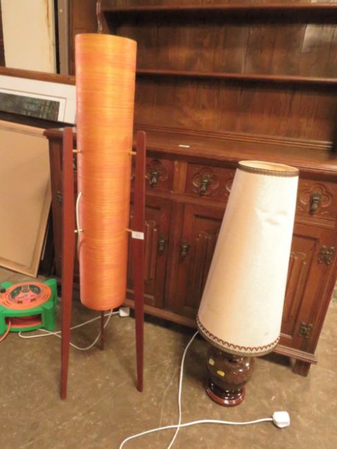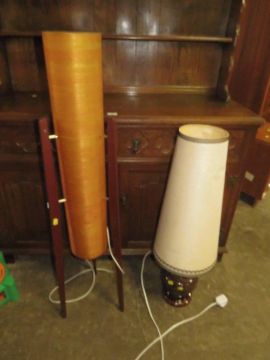 A MID CENTURY TEAK ROCKET LAMP WITH ANOTHER LAMP (2)