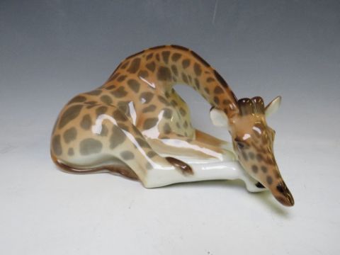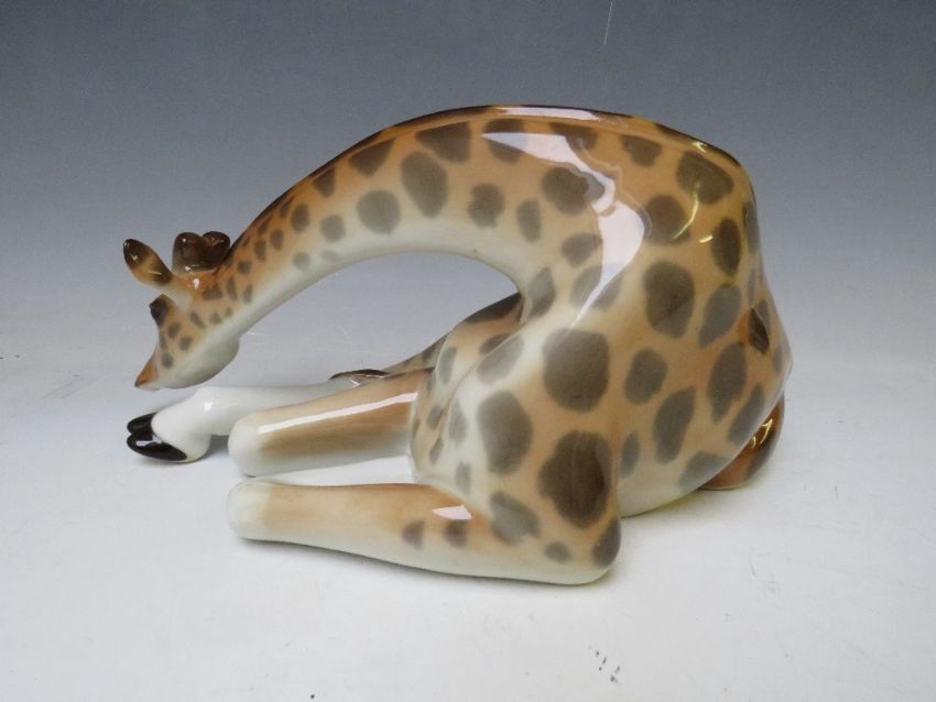 A LOMONOSOV USSR CERAMIC FIGURE OF A RECUMBERENT GIRAFFE