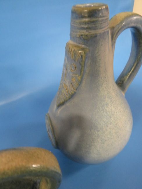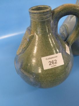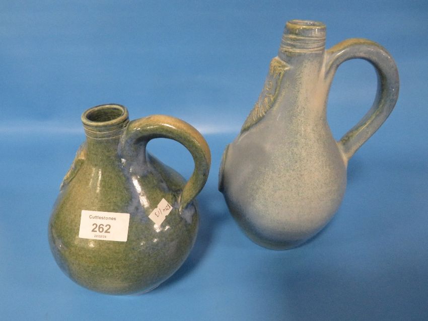 TWO STUDIO POTTERY BELLARMINE STYLE JUGS THE TALLEST 23.5 CM
