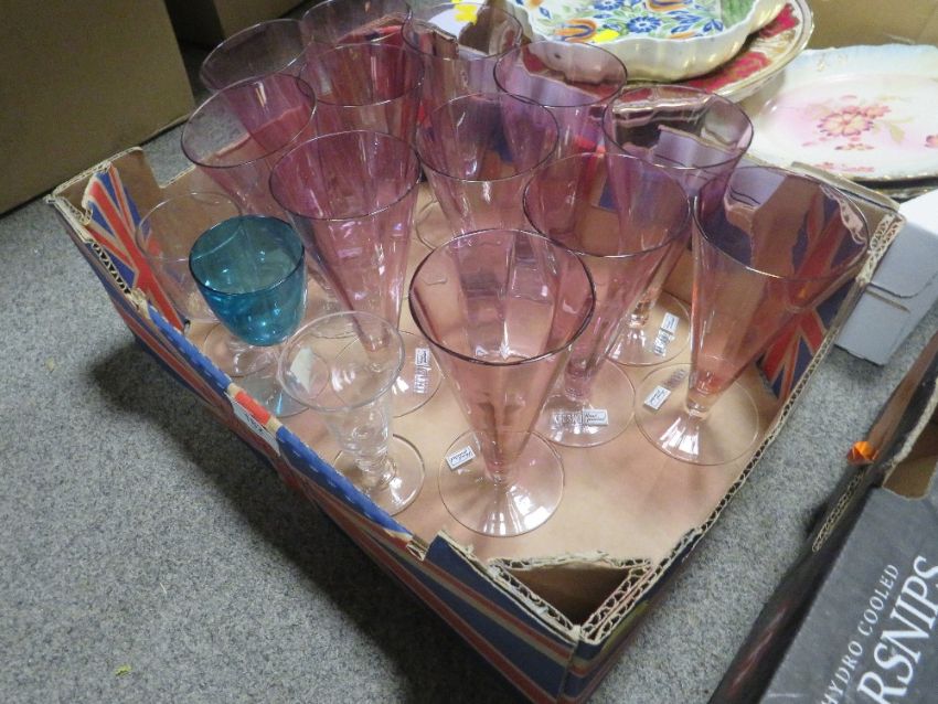 THREE TRAYS OF ASSORTED CERAMICS TOGETHER WITH A TRAY OF GLASSWARE (4)