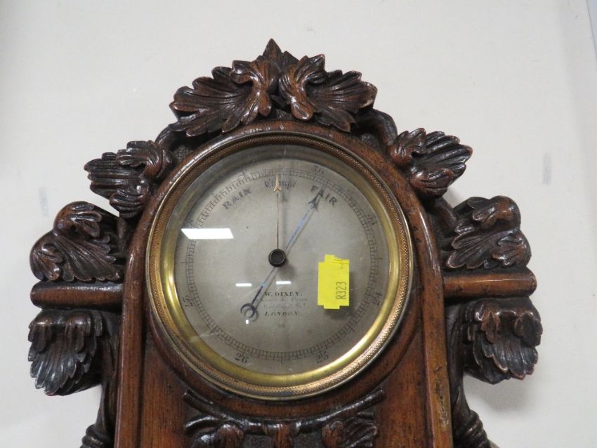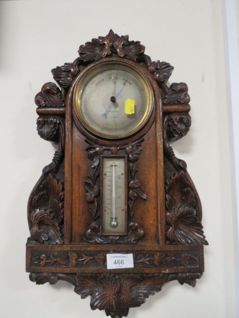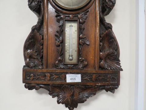 AN ANTIQUE HEAVILY CARVED WALL BAROMETER A/F