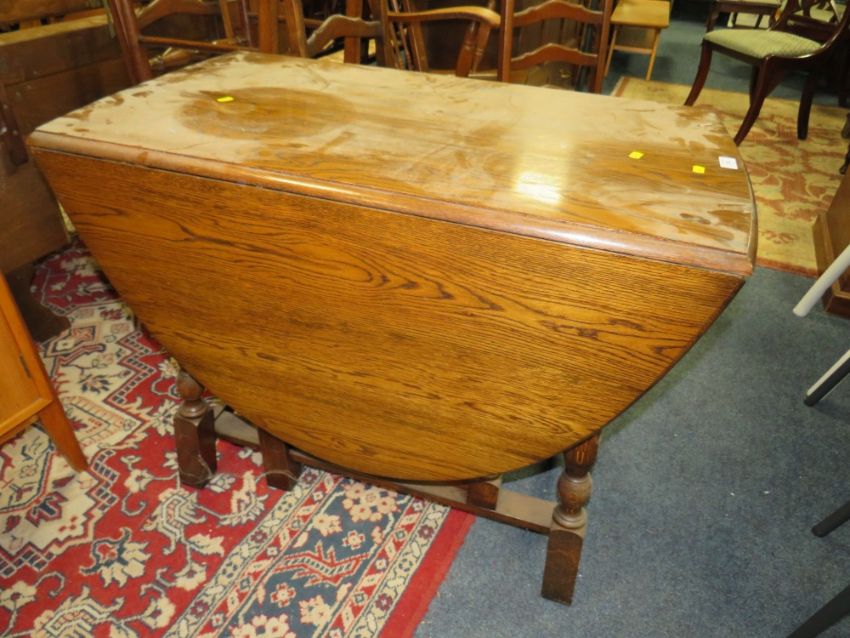 AN OAK DROPLEAF TABLE AND FOUR CHAIRS
