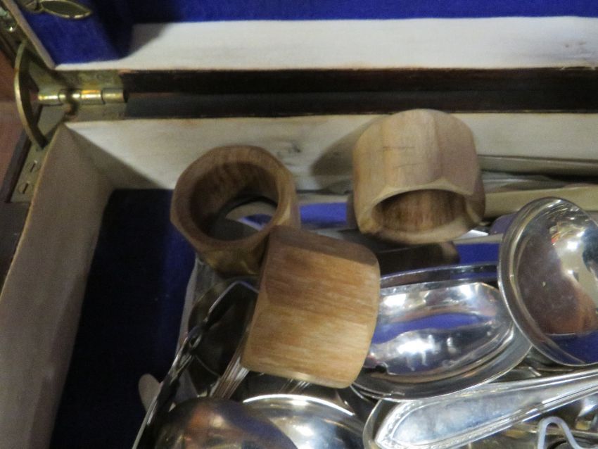 AN OAK CUTLERY CANTEEN AND CONTENTS TOGETHER A SMALL MAHOGANY BOX (2)