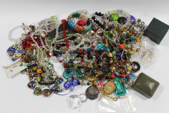 A SELECTION OF COSTUME JEWELLERY TO INCLUDE MILLEFIORE STYLE BRACELETS ETC
