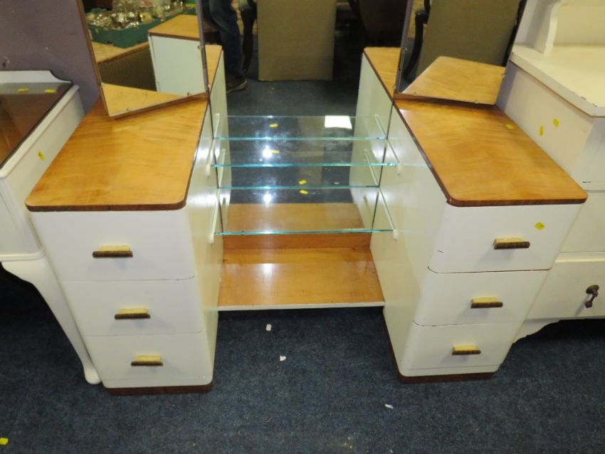 A DECO WHITE PAINTED WARDROBE AND DRESSING TABLE (2)