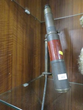 AN ANTIQUE FOUR CHAMBER TABLE TOP TELESCOPE ON FOLD OUT STAND