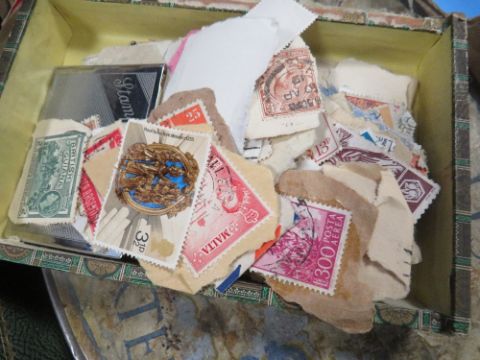 A TRAY OF COLLECTABLE'S TO INCLUDE STAMP ALBUMS , CIGARETTE CARDS ETC