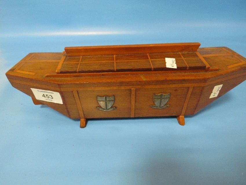 UNUSUAL WW11 BOX MODELLED AS A 'DUKW' AMPHIBIOUS TRUCK WITH METAL PLAQUES INSCRIBED 'ITALY 1943 - 44' 'EIGHTH ARMY' AND 'PRIDE OF ARRAN'