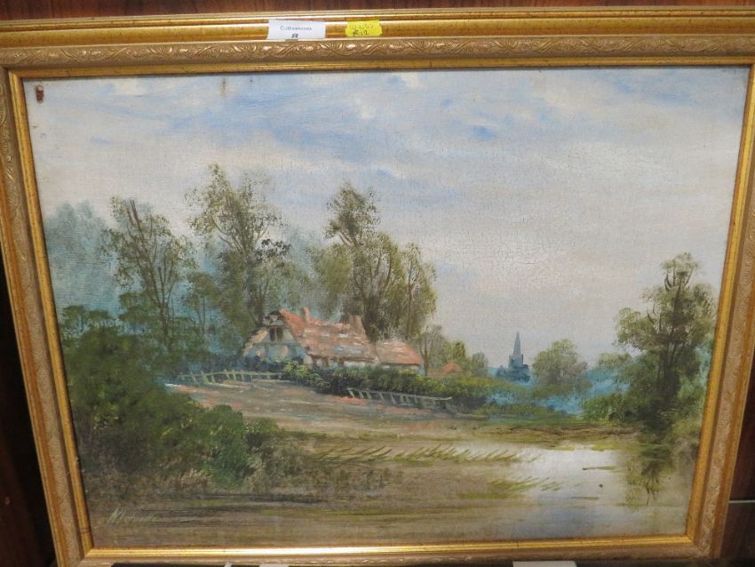 AN ENGLISH COUNTRY LANDSCAPE OIL ON CANVAS - 37 x 49.5 cm