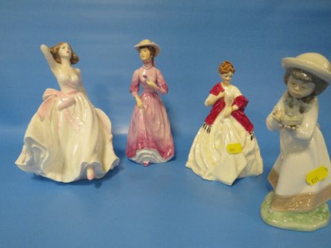 FOUR FIGURINES TO INCLUDE COALPORT AND NAO EXAMPLE - Young Love Coalport figure has chip to base