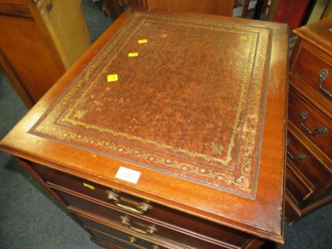 A REPRODUCTION TWO DRAWER FILING CABINET WITH LEATHER TOP A/F