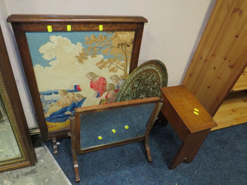 AN OVAL OAK MIRROR, OAK SCREEN, MIRROR ETC