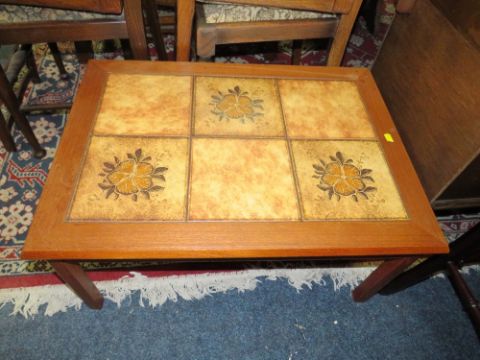AN OAK ARMCHAIR & RETRO TILE TOP TABLE (2)
