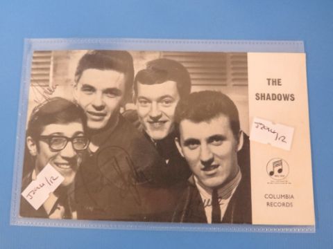 THE SHADOWS, SIGNED COLUMBIA RECORDS PROMO CARD DEPICTING THE BAND