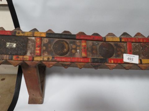 A VINTAGE DECORATIVE PAINTED BLOOMSBURY GROUP STYLE SHELF