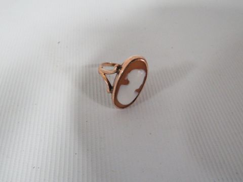 AN ANTIQUE ROSE GOLD 9CT CAMEO RING