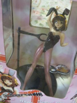 FIVE DIFFERENT BOXED ANIME BUNNY GIRL ¼ PVC FIGURES TO INCLUDE KYONS SISTER, MIKIRI ASHINA, EMINI KIMIDORI, HARUHI SUZUMIYA WITH GUITAR AND HARUHI SUZUMIYA SEATED