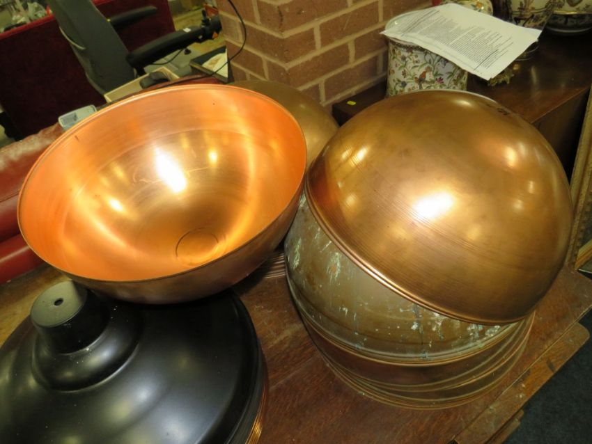 A QUANTITY OF 14 COPPER CIRCULAR SHADES/BOWLS DIA. 36 CM