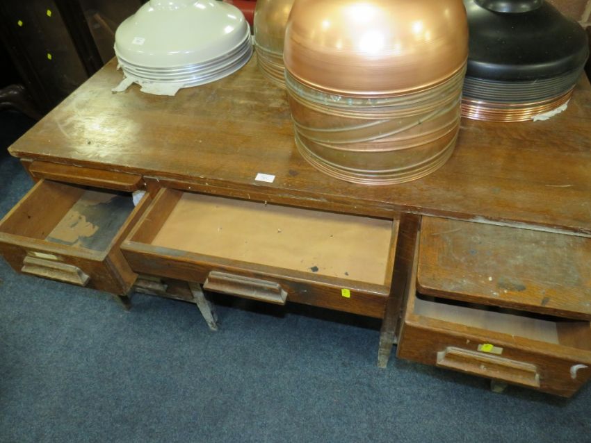 A VINTAGE OAK TWIN PEDESTAL DESK W - 136 CM