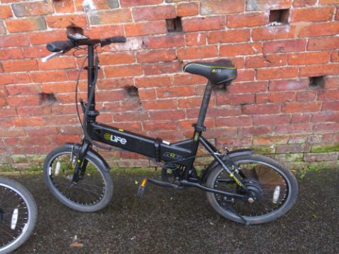 AN ASSIST ELECTRIC TOWN BIKE TOGETHER WITH AN ELIFE FOLD UP ELECTRIC BIKE A/F (2)