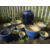 A LARGE BLUE CERAMIC GARDEN URN AND A SELECTION OF 15 PLANTERS