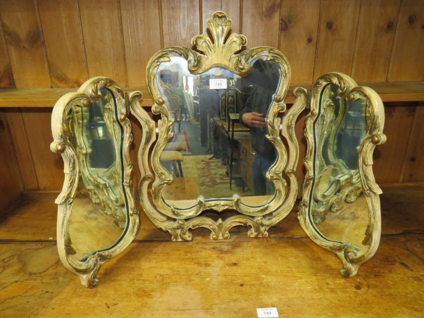 A TRIPLE MIRROR AND THREE ASSORTED PICTURES (4)