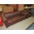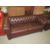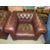 A BROWN CHESTERFIELD SETTEE AND ARMCHAIR