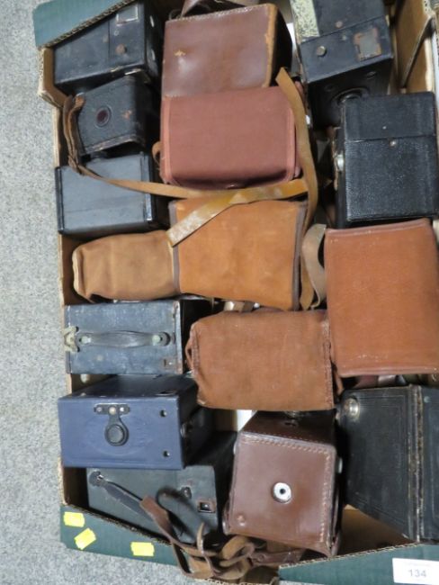 TWO TRAYS OF ASSORTED VINTAGE CAMERAS ETC