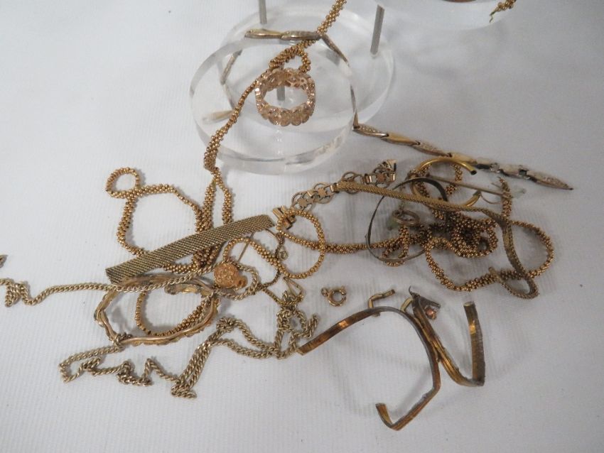 A QUANTITY OF YELLOW MENTAL ANTIQUE JEWELLERY PIECES