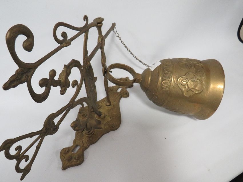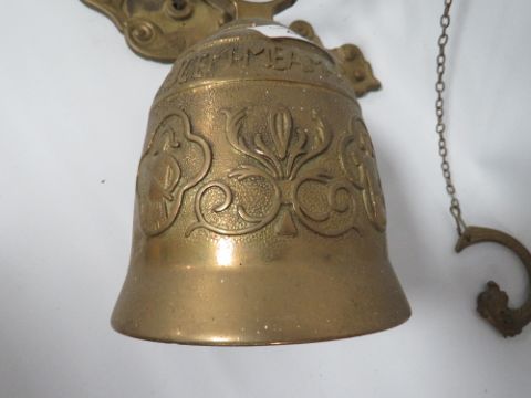 A VINTAGE GILT METAL WALL MOUNTED BRASS BELL