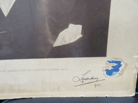 A LARGE AUTOGRAPHED PHOTOGRAPH OF THE MARQUIS OF LONDONDERRY DATED 1922 53 CM X 68 CM
